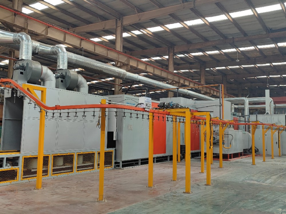 跟蹤項(xiàng)目進(jìn)度中,來到其中一家客戶企業(yè)所在的工業(yè)園區(qū),這家企業(yè)采購的是達(dá)克羅浸噴一體懸掛鏈設(shè)備,該設(shè)備主要適用于各大型金屬件。走進(jìn)生產(chǎn)加工車間,項(xiàng)目正按計(jì)劃有條不紊的展開,一排排設(shè)備整齊排列,技術(shù)人員正在緊鑼密鼓地進(jìn)行著設(shè)備安裝調(diào)試,為正式投產(chǎn)做著準(zhǔn)備。據(jù)了解,該項(xiàng)目的設(shè)備均已全部到位,目前正在進(jìn)行調(diào)試,預(yù)計(jì)五月底前各生產(chǎn)線都將具備生產(chǎn)能力。